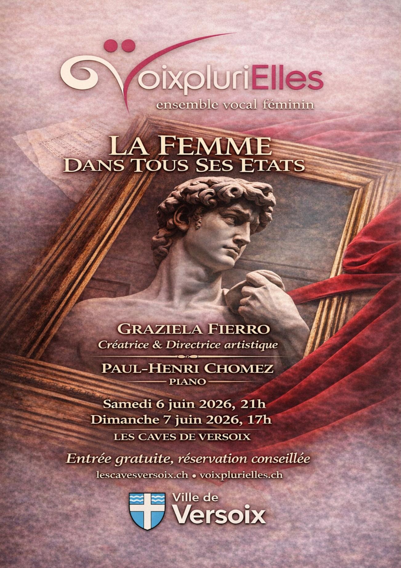Créé sur une idée originale de Graziela Fierro, ce spectacle musical explore la vie amoureuse d’une femme aux multiples visages, incarnée par l’ensemble des VoixpluriElles. Le spectacle mêle des extraits d’opéras contemporains et de comédies musicales, des chansons françaises, du jazz et de la pop américaine